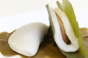 柏の葉は、神様へのお供え物を盛る器として古代より利用されていた神聖なものだそう。